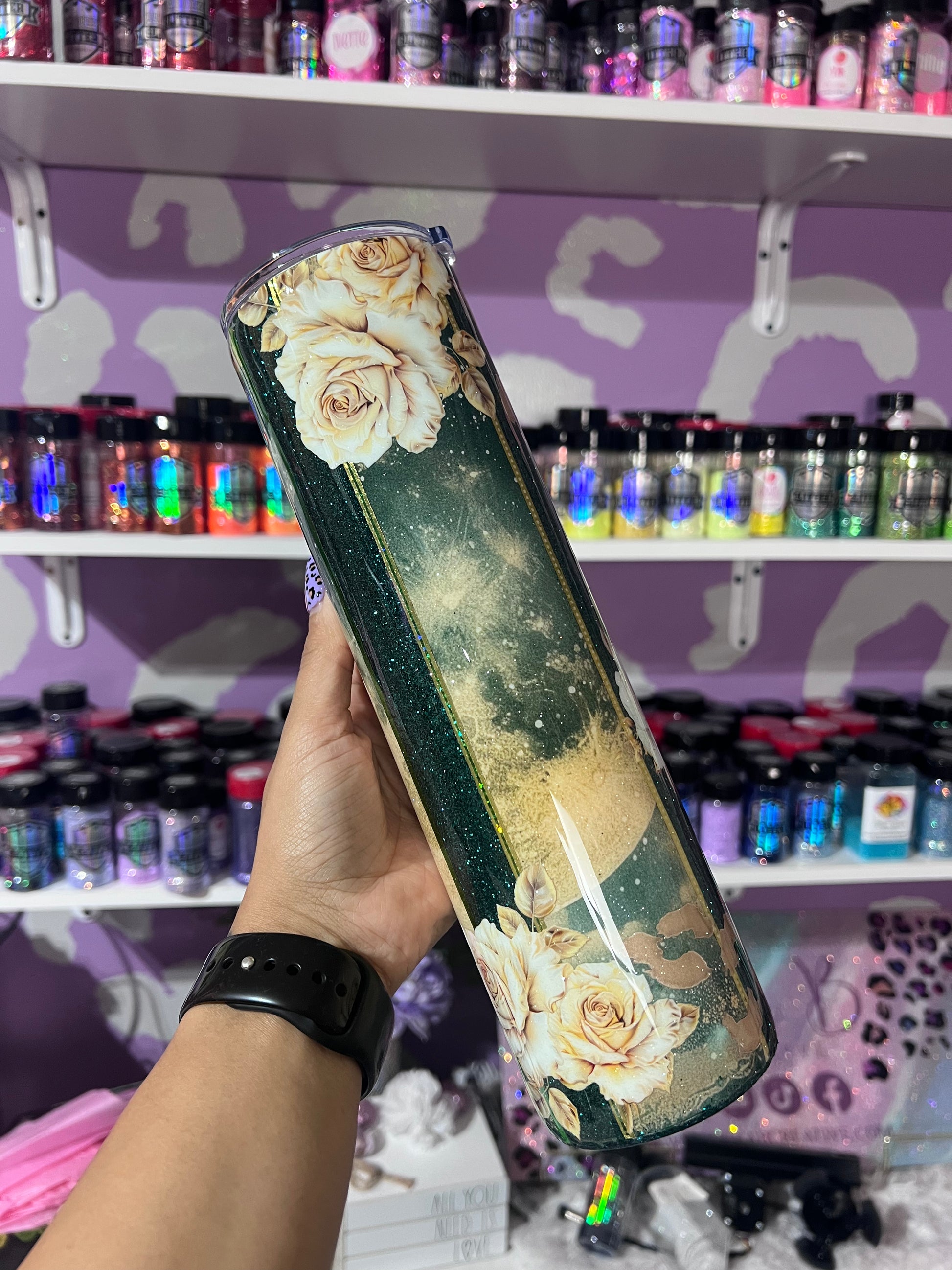 Nothing says sippin pretty than this gorgeous handmade tumbler. Hand-crafted with inks, glitter and epoxy, this tumbler is as unique as you are. Stay hydrated and motivated on the go.