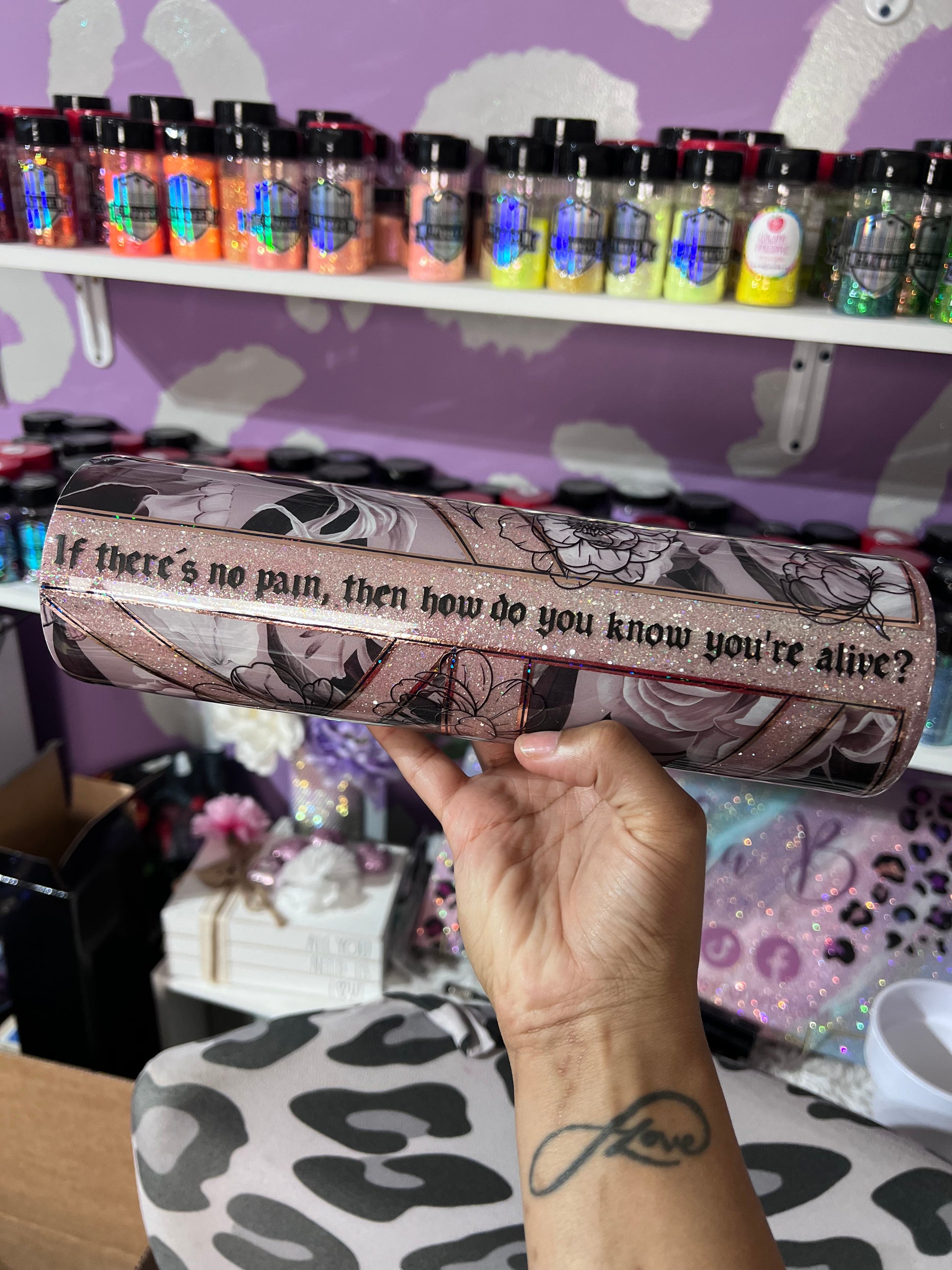 Nothing says sippin pretty than this gorgeous handmade tumbler. Hand-crafted with inks, glitter and epoxy, this tumbler is as unique as you are. Stay hydrated and motivated on the go.