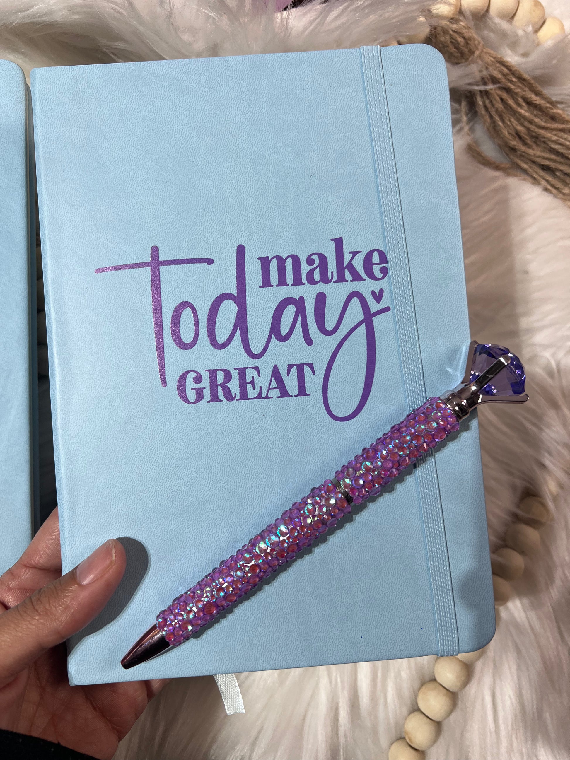 Gorgeous notebook and pen sets for those that love to journal, write notes, or just love a cute set. 3 sets available each notebook comes with a matching rhinestone pen .